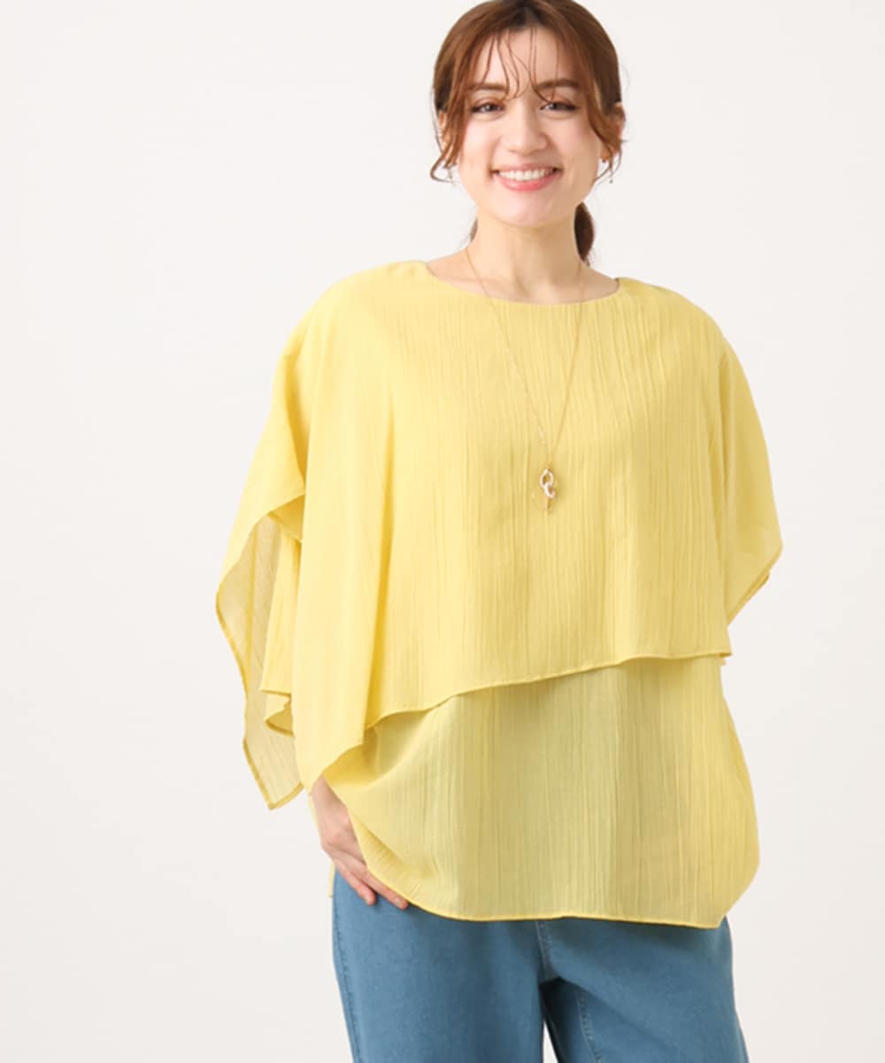 コットンポリエステル生地で着心地良く、縦のシボ感があるのでシワを気にせず着用出来そうです。
