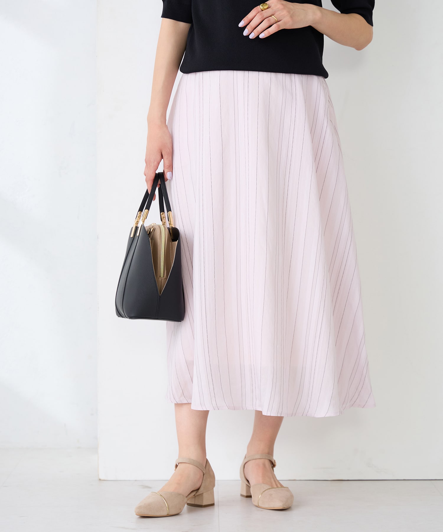 春らしいピンク×ランダムストライプがポイントの、着映え抜群フレアスカートです!