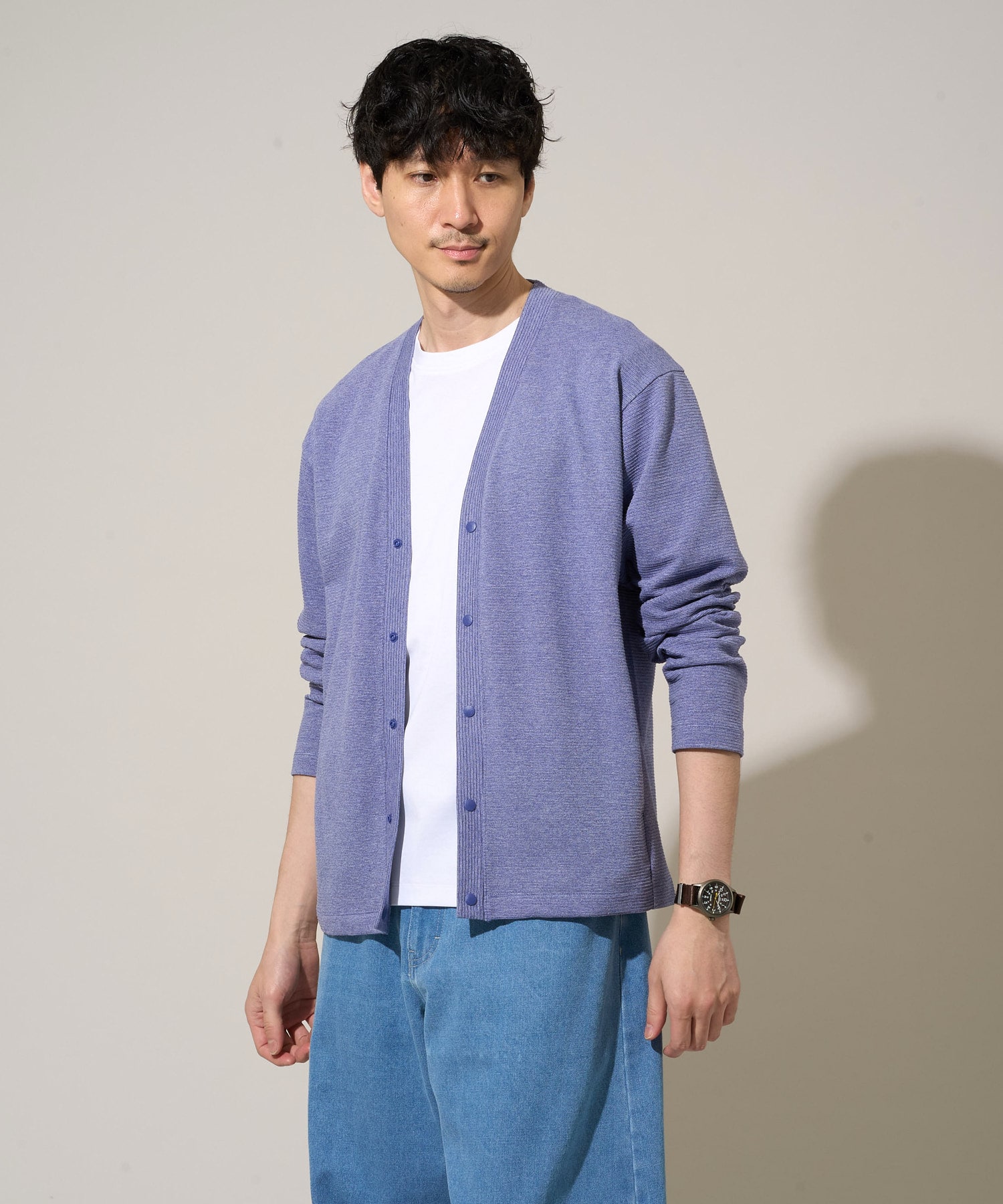 表面感のあるジャージー素材がポイントの、季節の変わり目にピッタリなカーディガンです!