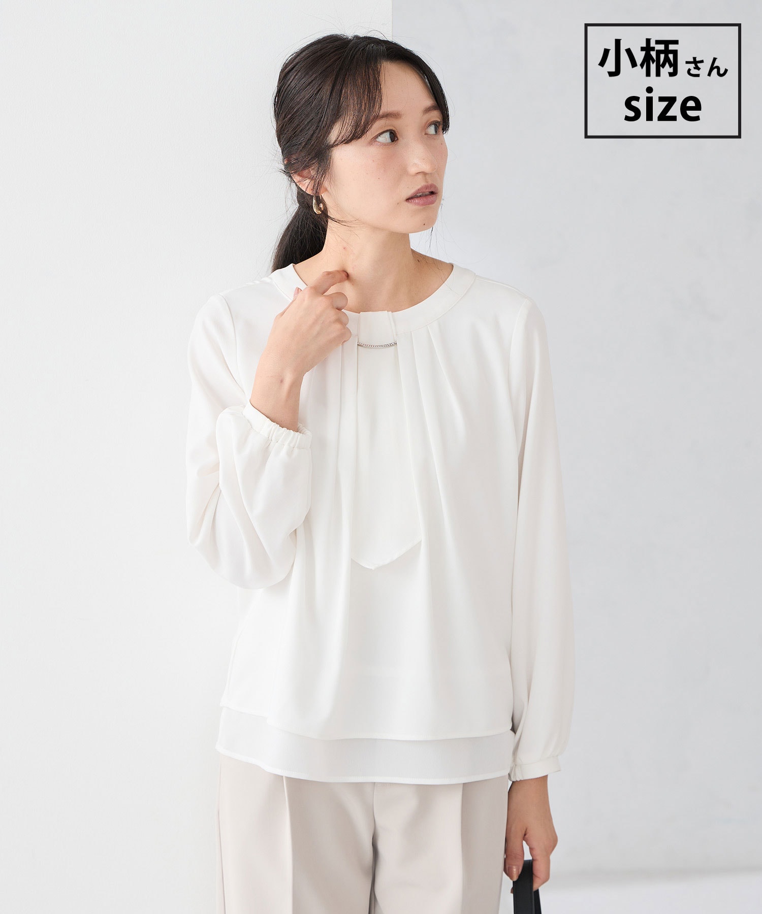 >>>【洗える/ストレッチ】ボウタイメタルチャームブラウス