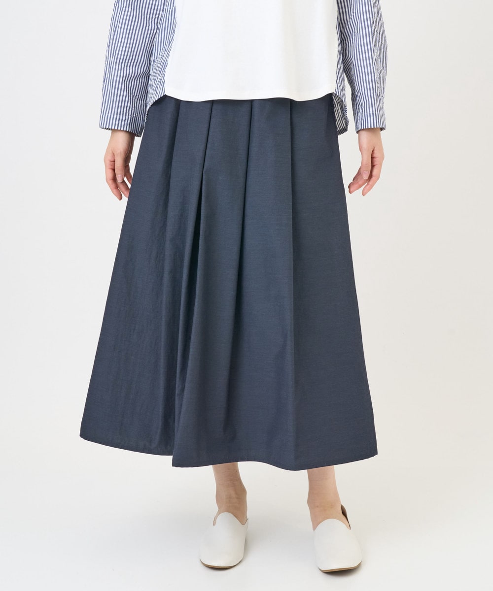 ウエストゴム仕様のスカートは着心地はラクなのにきちんと感も演出できるので、通勤や休日のリラックスコーデに最適です。