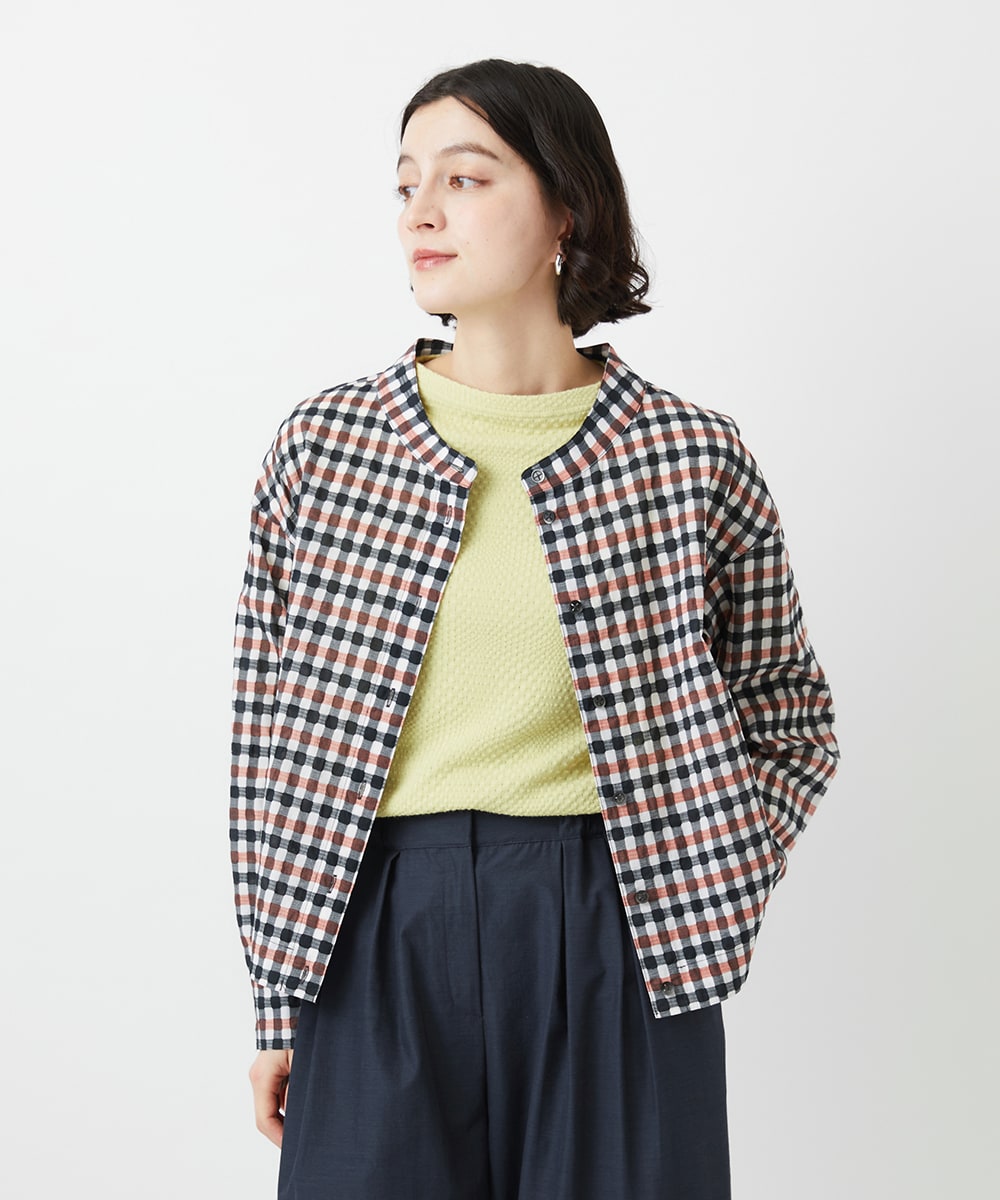 ·塩縮ギンガムプリントブラウス