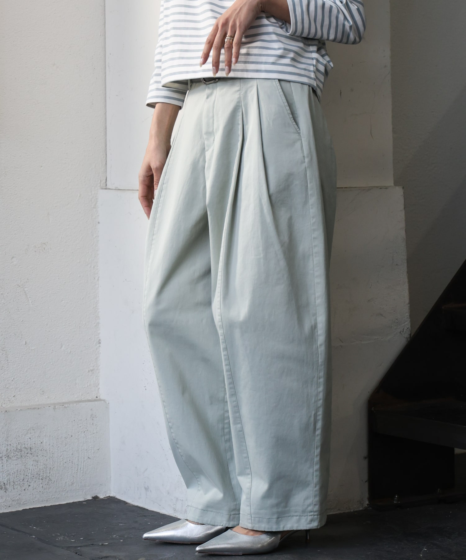 もも周りにしっかりとゆとりを持たせたバレルパンツです。コットンチノのハリ感と立体的なシルエットがとにかく可愛い1枚。