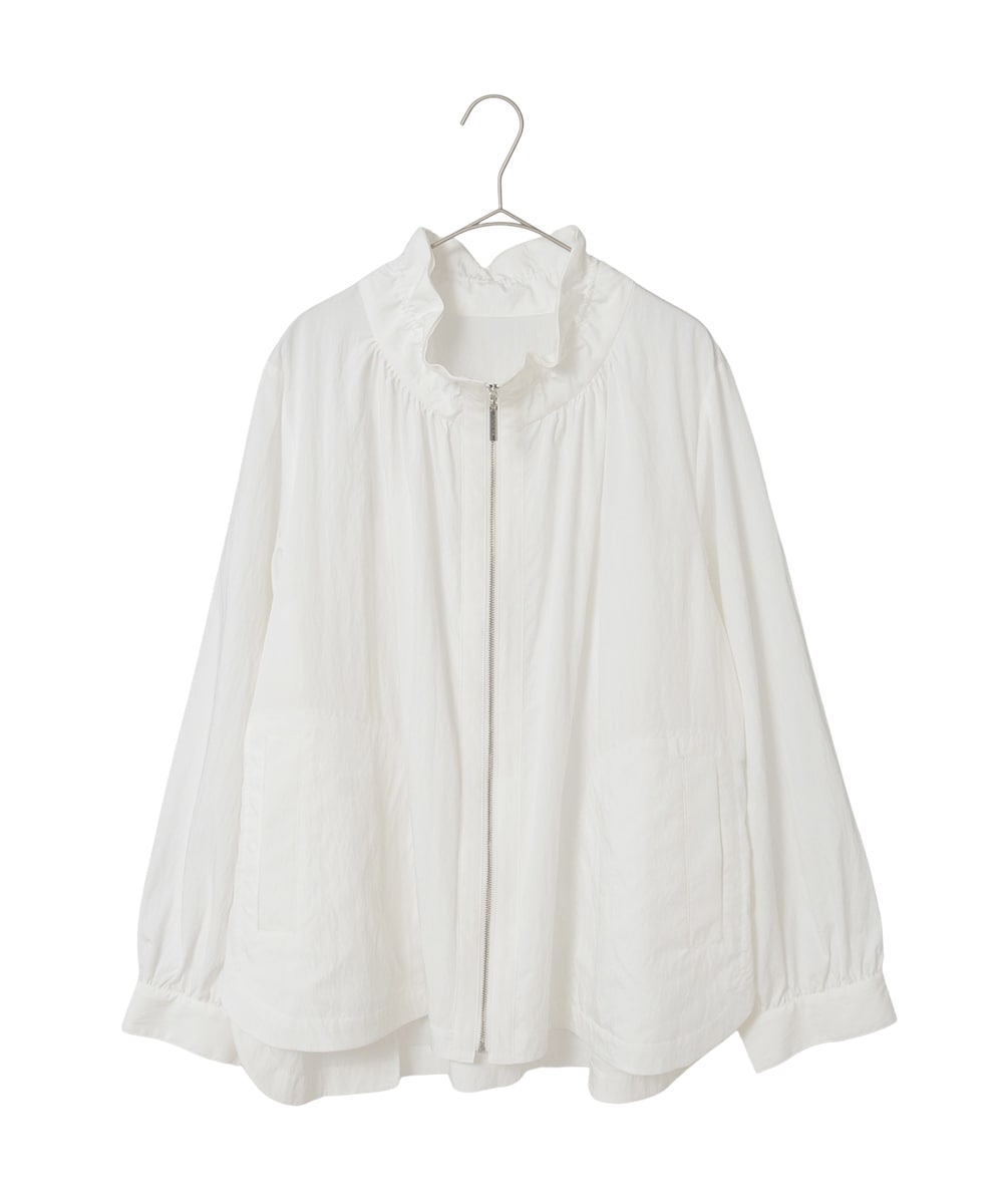 ワッシャー素材の軽やかなブルゾンは、ヴィンテージ風のナチュラルなシワ感とシャーリング仕立てで、華やかさとこなれた雰囲気を演出します。