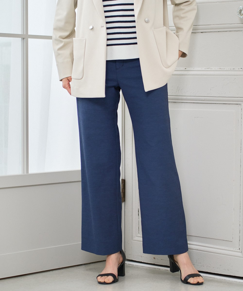 少しハリのある素材がシルエットを綺麗に見せてくれます。オンにもオフにもコーディネートしやすいパンツです。
