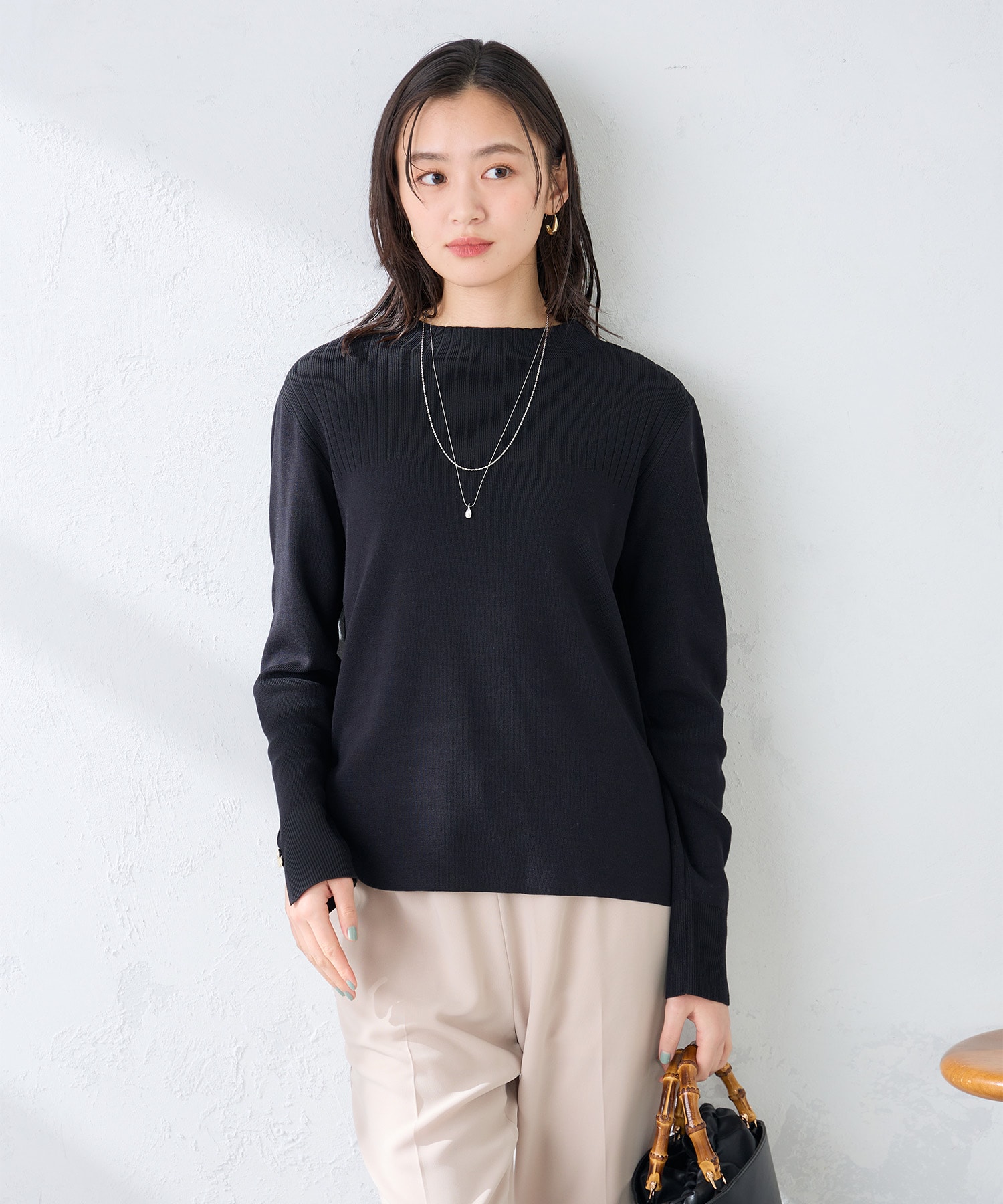 薄手ニットを重ねて寒さ対策!