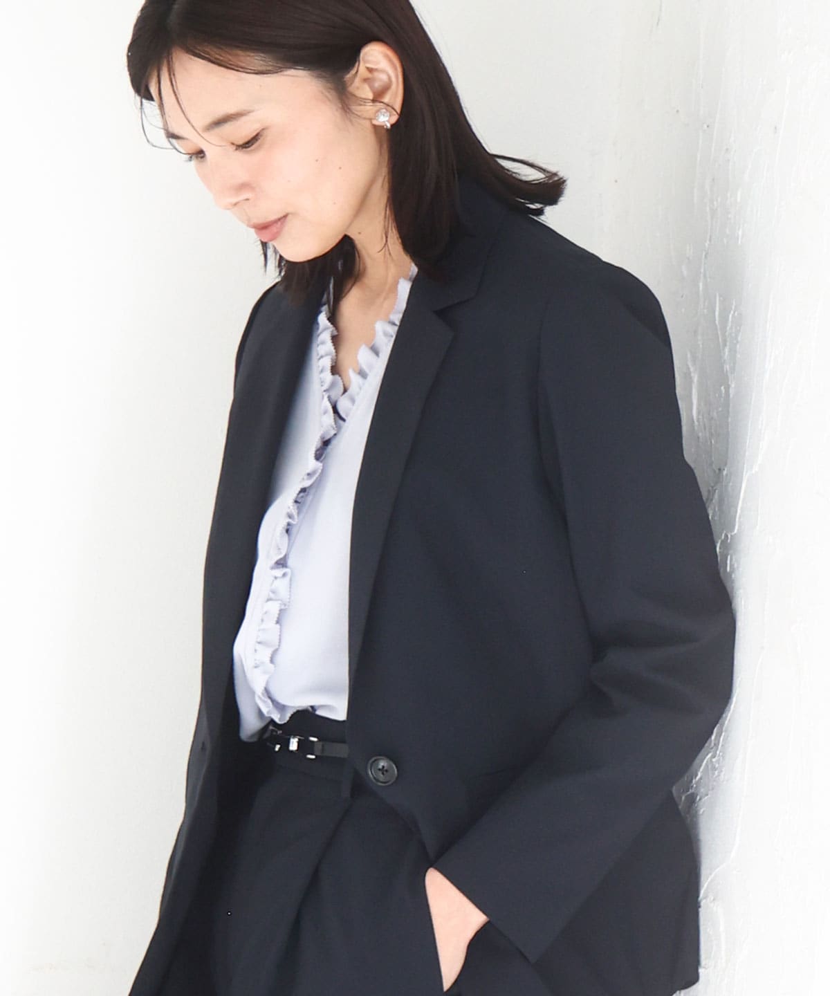さらりと羽織れる気軽さがうれしい、カーディガン感覚で着られるきれいめジャケットです。素材感はとっても軽く、形崩れしにくいくらいのほどよいハリ感あり。ドライタッチな手触りで、表面はテカテカしすぎずマットな質感。サイズ感は細身すぎず、伸縮性もあるのでストレスフリーの着心地でした。しわになりにくく洗濯機洗いも可能なので、出張やご旅行などの持ち運びにもおすすめの一枚です。