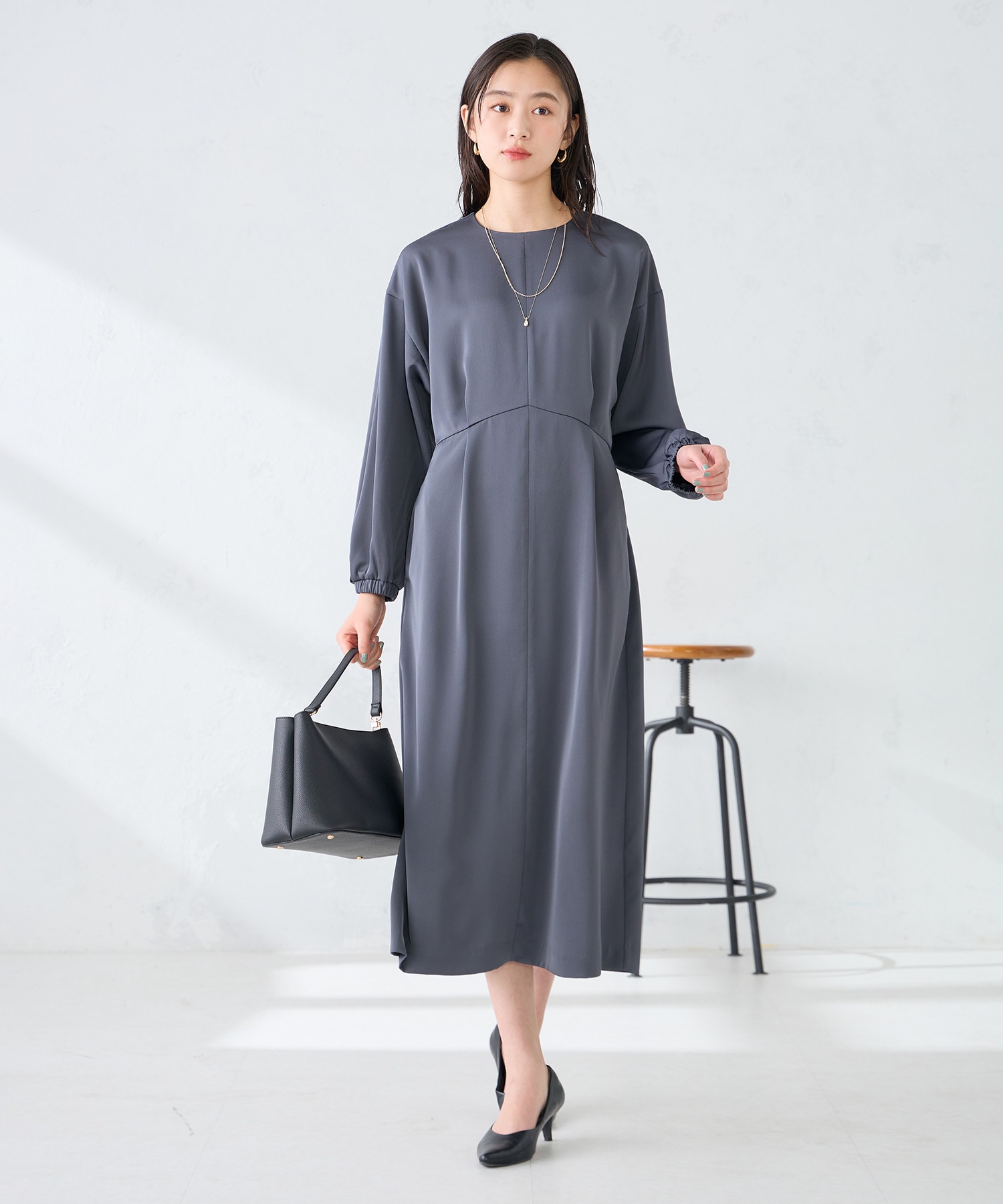 〈サテンドルマンスリーブワンピース〉