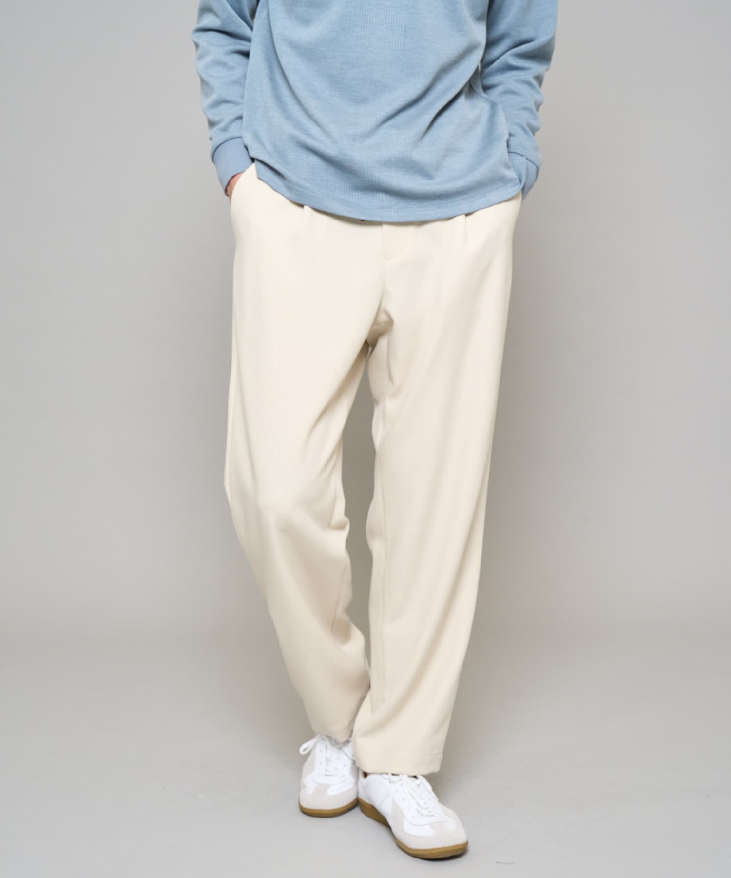 ストレッチ性としわ防止機能に優れ、オンオフ問わず着回せる万能パンツです。