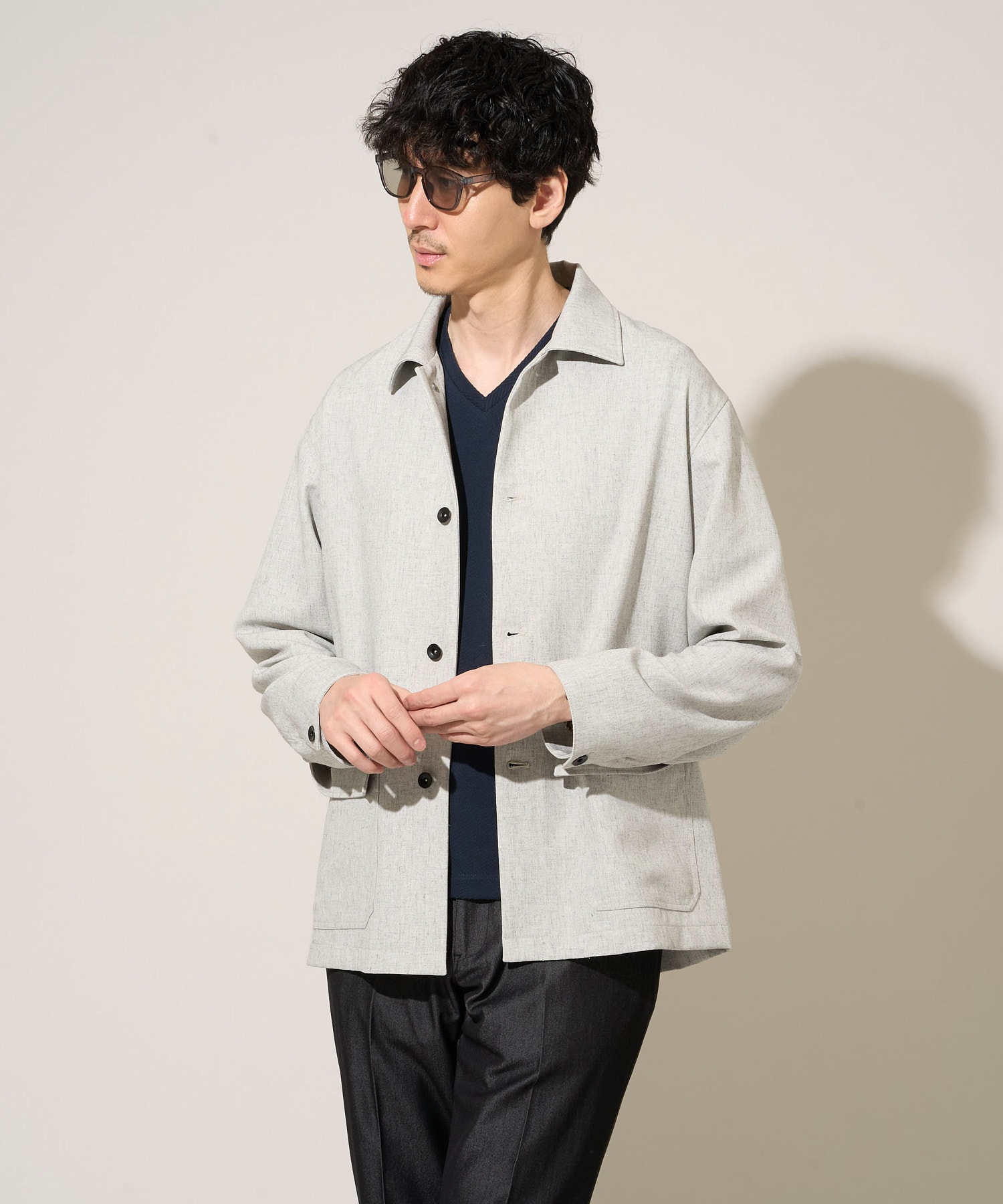 軽やかなメランジ素材のジャケットは、薄手ながらも肌触りが良く、長く着られる一枚。