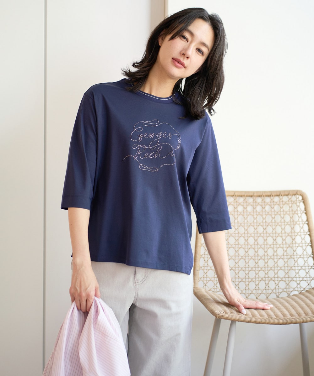 紺色ラメ刺繍のカットソーは、デイリーに華やかさをプラス。