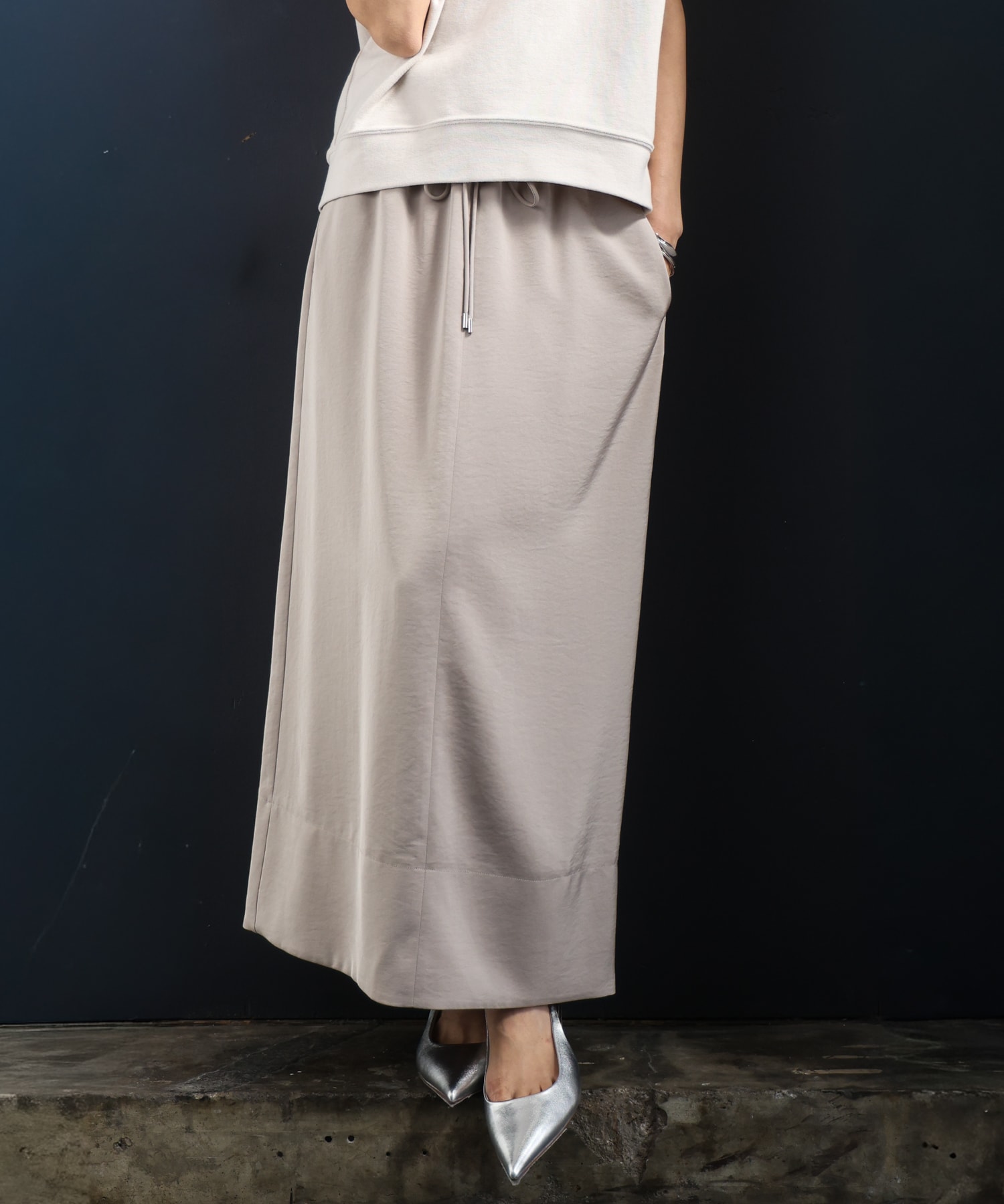 光沢と落ち感のあるとろみ素材で大人のリラックススタイルが完成します