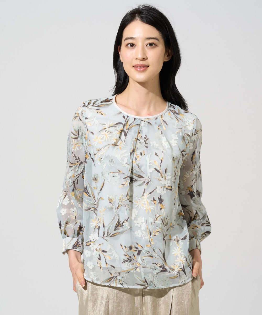 立体感のあるフラワープリントをオパール加工し女性らしく上品な印象に!