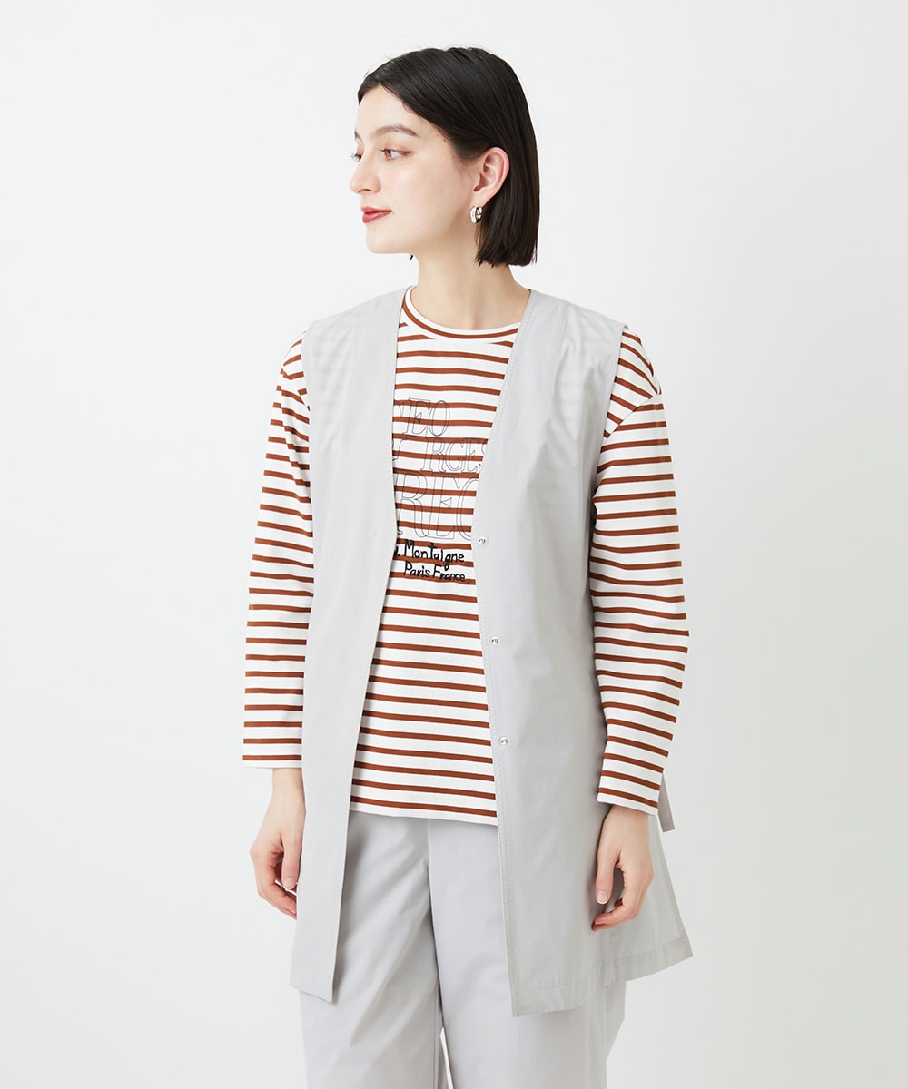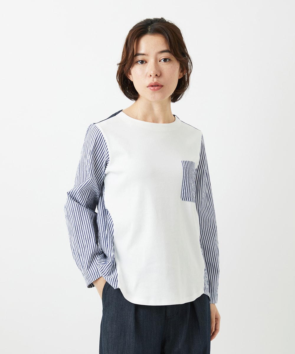 カットソーとシャツがドッキングの爽やかなトップスです。