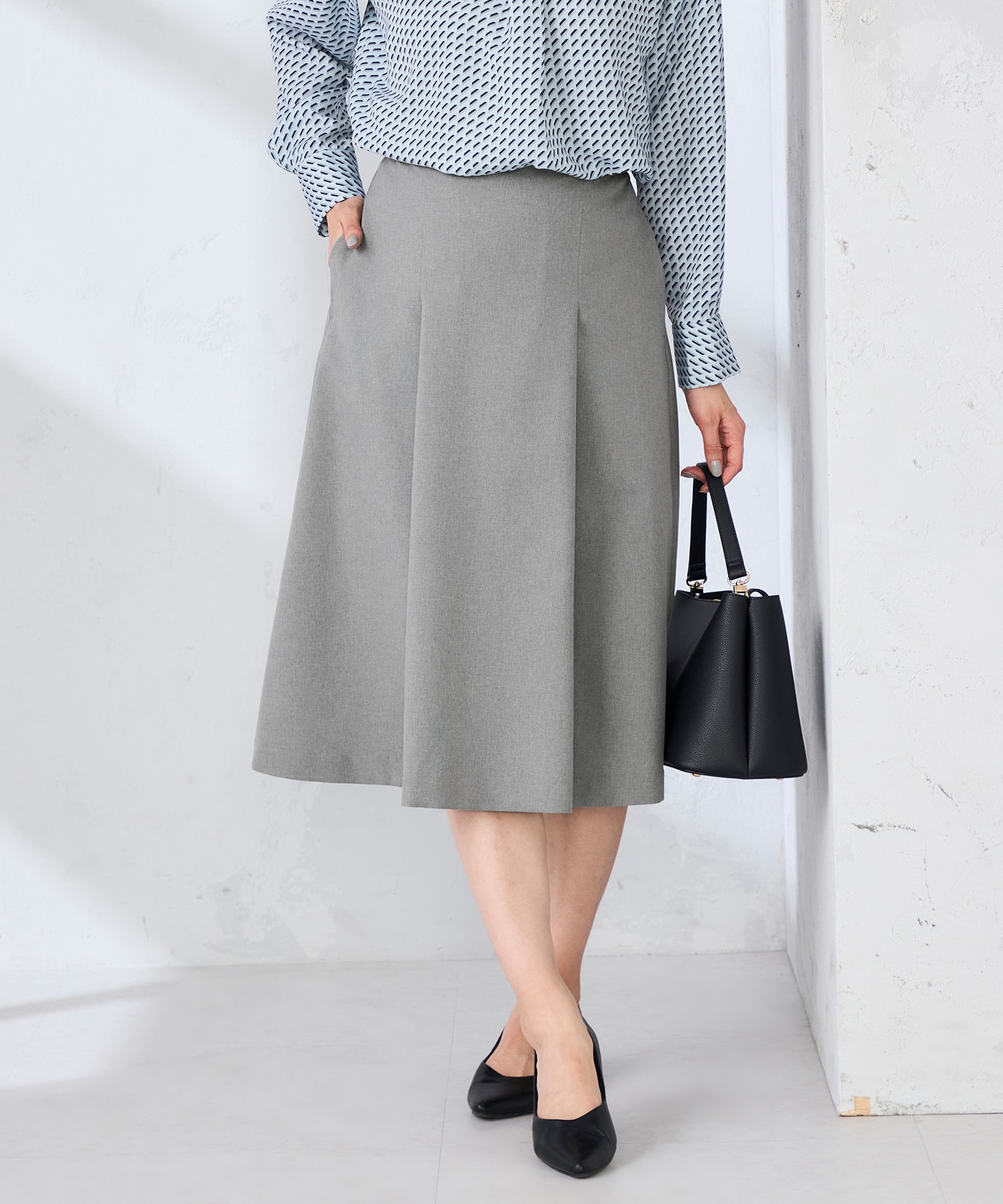 裾にかけて広がりすぎないフレアが上品な麻調素材スカート。