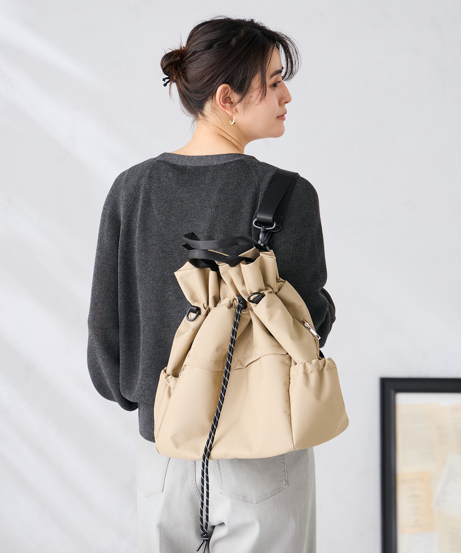 ウエストのドロストですっきりしたシルエットに調整可能