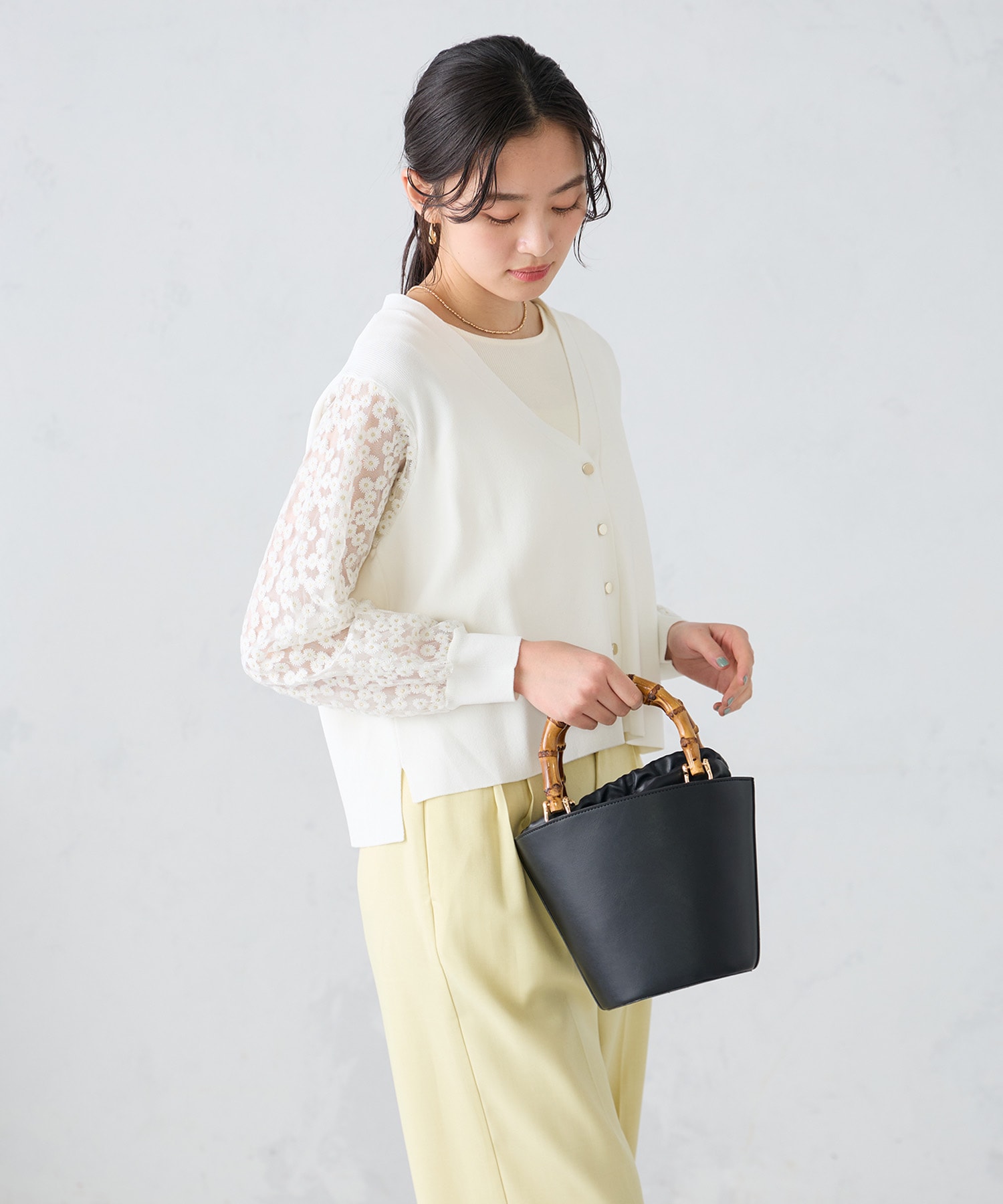 羽織るだけで華やぐ、軽やかな印象の袖レースカーディガンは