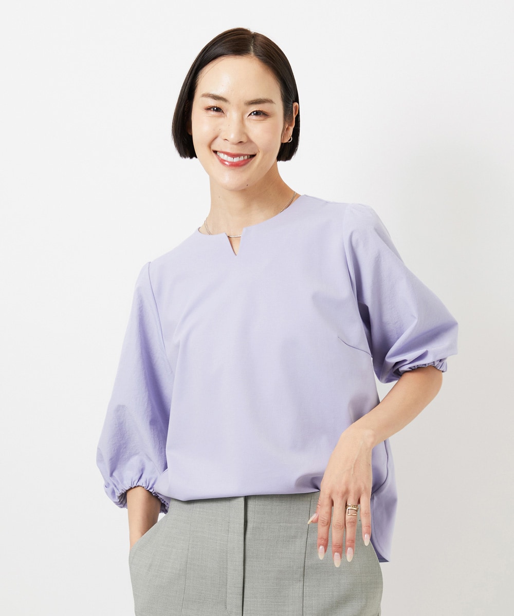 七分袖のパフスリーブが、気になる二の腕をさりげなくカバー。