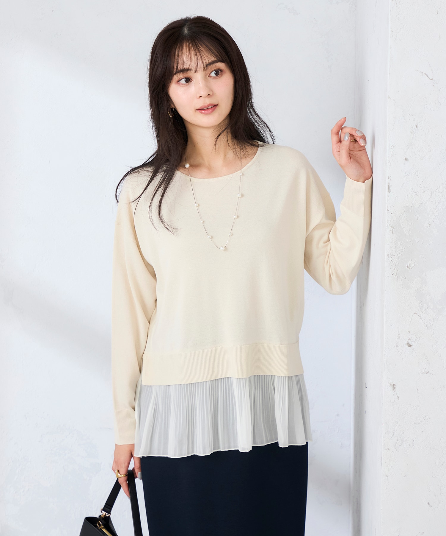 オーガンジー素材の繊細なプリーツ加工を施した、裾のレイヤードデザインが女性らしいトップスです!