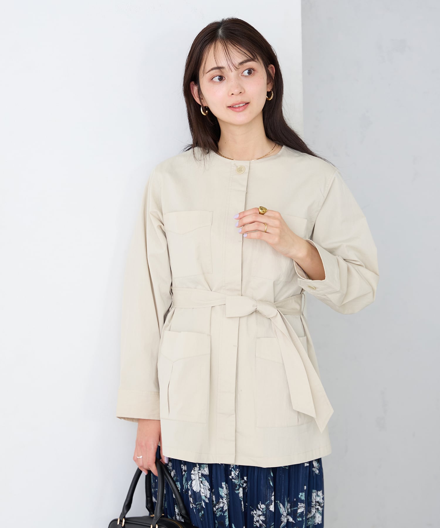 すっきりしたノーカラーデザイン&大きすぎないサイジングのサファリジャケットです!