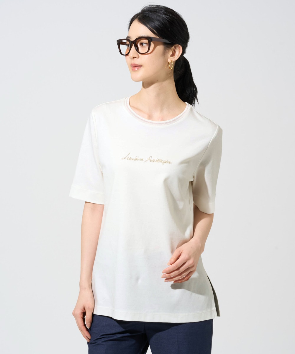 胸元に繊細なビーズ刺繍を施したカジュアルにならない様に拘ったTシャツ。