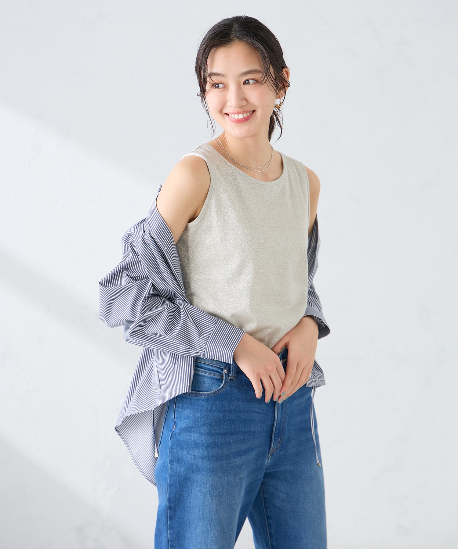 デイリーなデニム合わせからスカート合わせでフロントインしたスタイルまで合わせやすい一枚