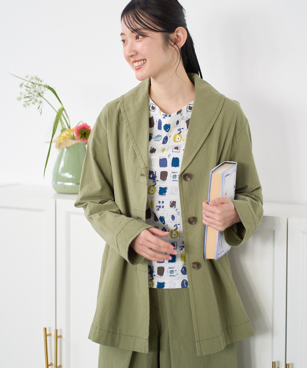 コットンジャケットは軽やかで羽織るだけで洗練された印象に。ややワッシャー加工でざっくりと羽織れりのが魅力です。