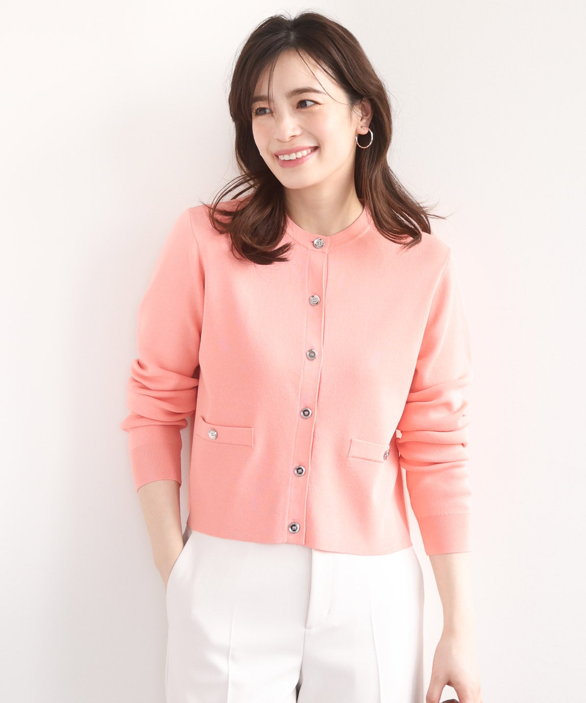 〔ハイゲージクロップド丈ニットカーディガン〕