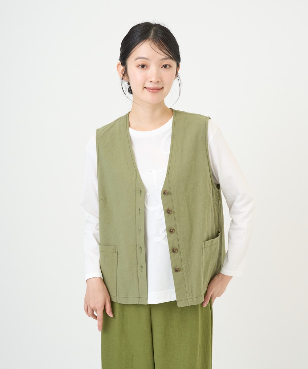 軽やかで肌触りの良いコットン素材は、季節を問わず快適に着用でき、重ね着やレイヤードも自在です。