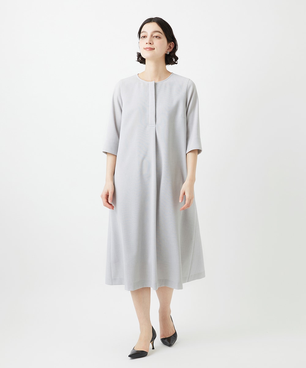 7分袖のワンピースはクルーネックとタックデザインで、動きと立体感をプラスしつつ、体型カバーも叶えます。落ち着いた色味とシンプルなデザインは、コーディネートの幅を広げ、季節を問わず長く楽しめる一着です。