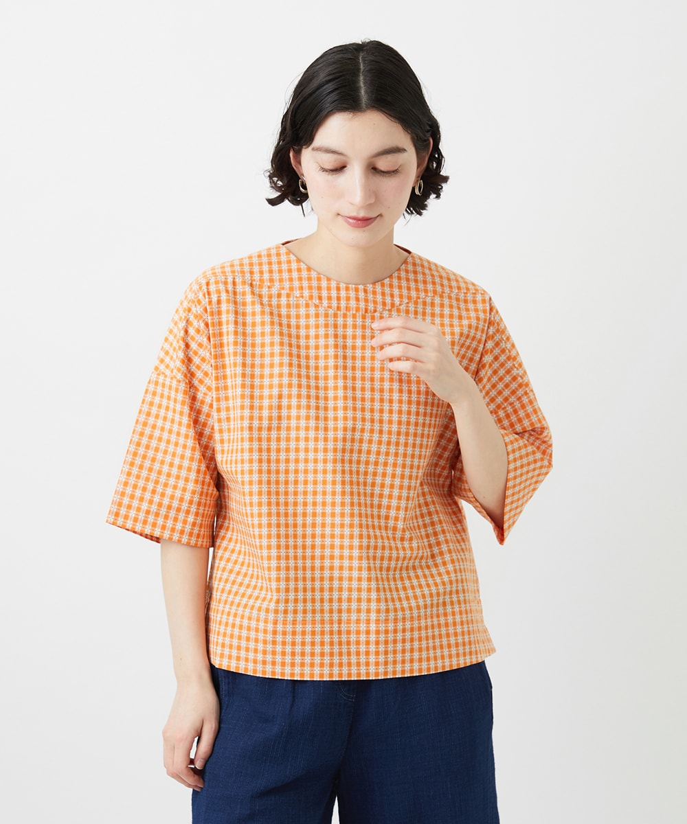 被りタイプのブラウスで、長めのお袖は