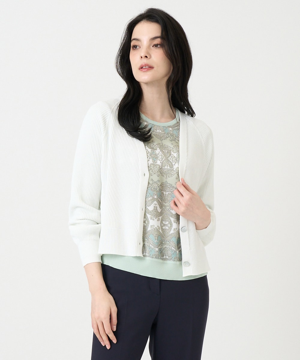 春先の軽い羽織物として何にでも合わせやすいカーディガンです。