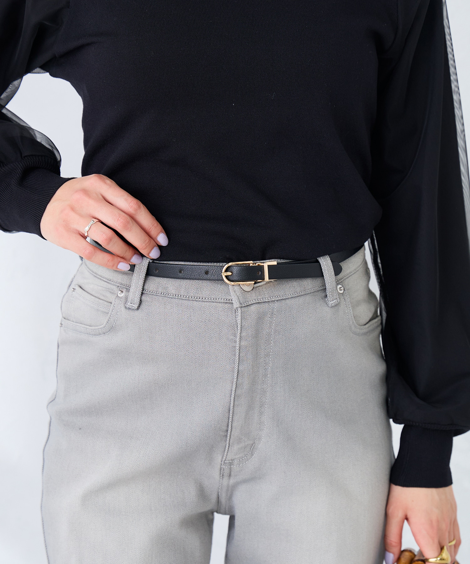 ブラウスは、前後2WAYで着用可能です。袖口はゴム仕様で、タックアップしても着ていただけます。