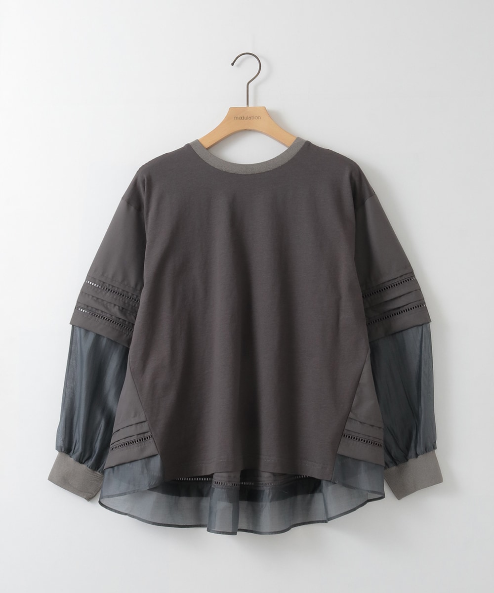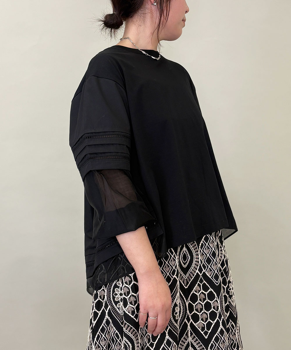 コットン素材にシアー素材をドッキングした切り替えカットソー