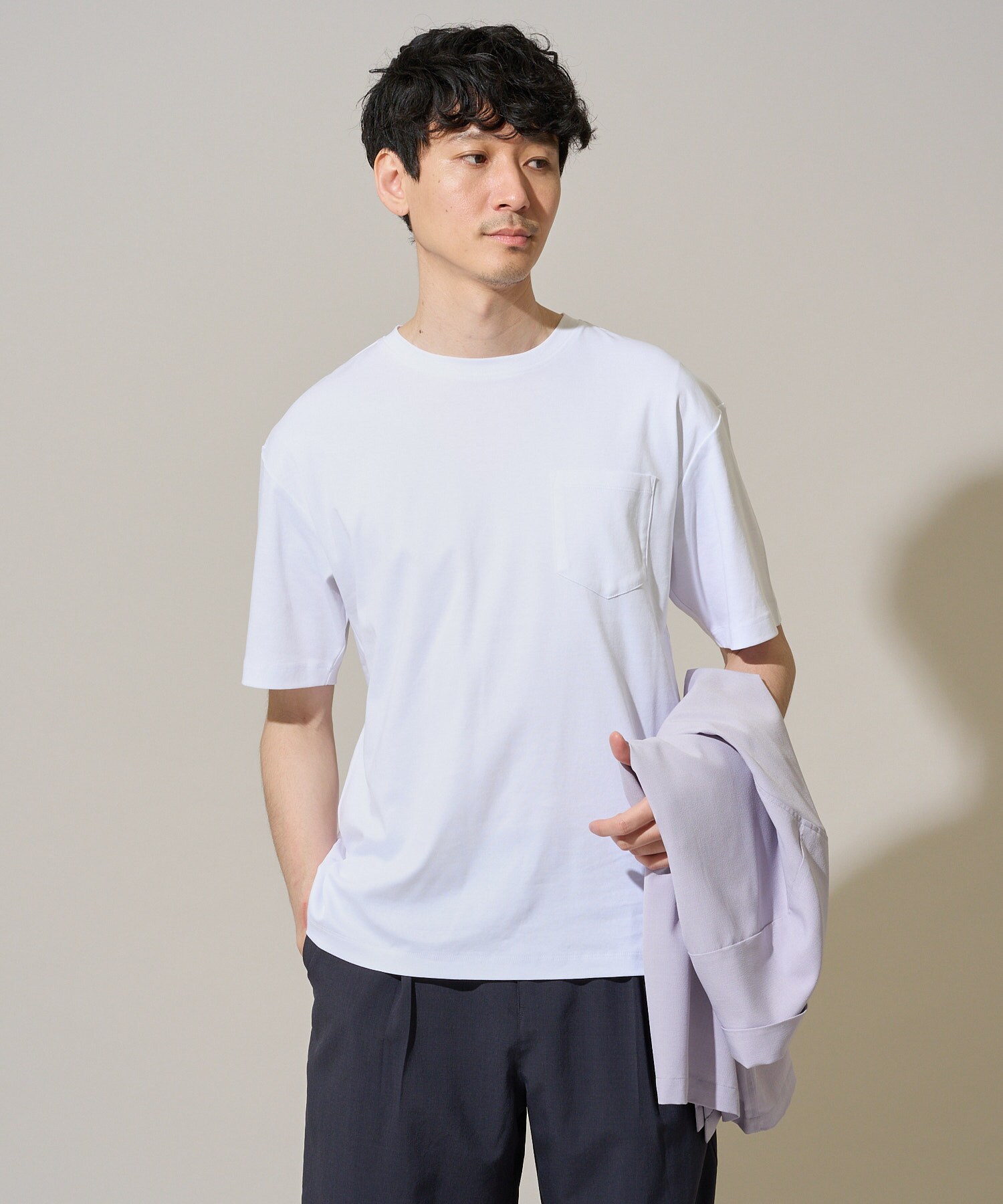 シアサッカーの軽やかさと伸縮性を兼ね備え、きちんと感とリラックス感を両立したデザインは、オフィスからカジュアルなシーンまで幅広く対応。