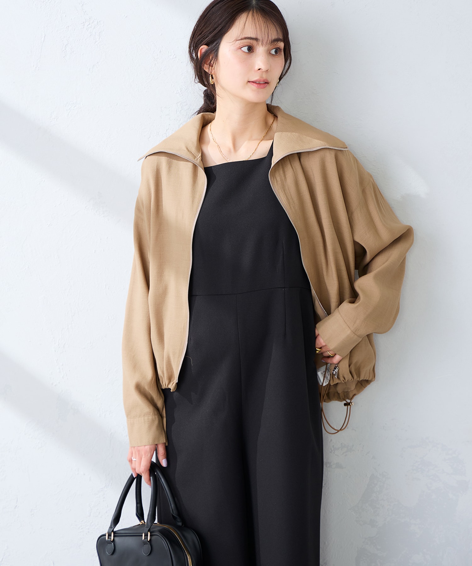 エアリーな表情と程よいボリューム感が大人可愛いスタンドカラーデザインのシアーブルゾンはFサイズ着用でゆったりタイプです