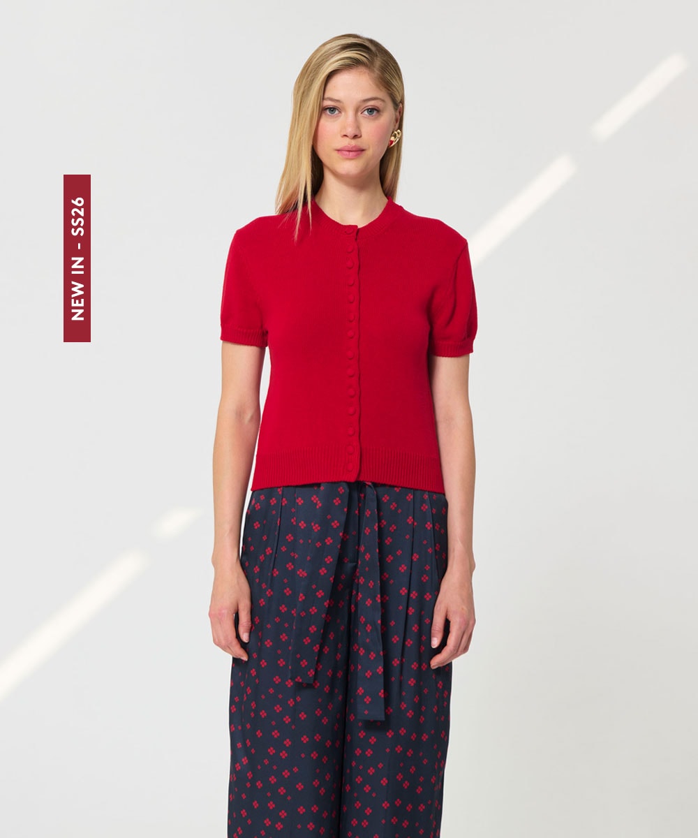 小さなくるみボタンがアクセントになったカーディガン