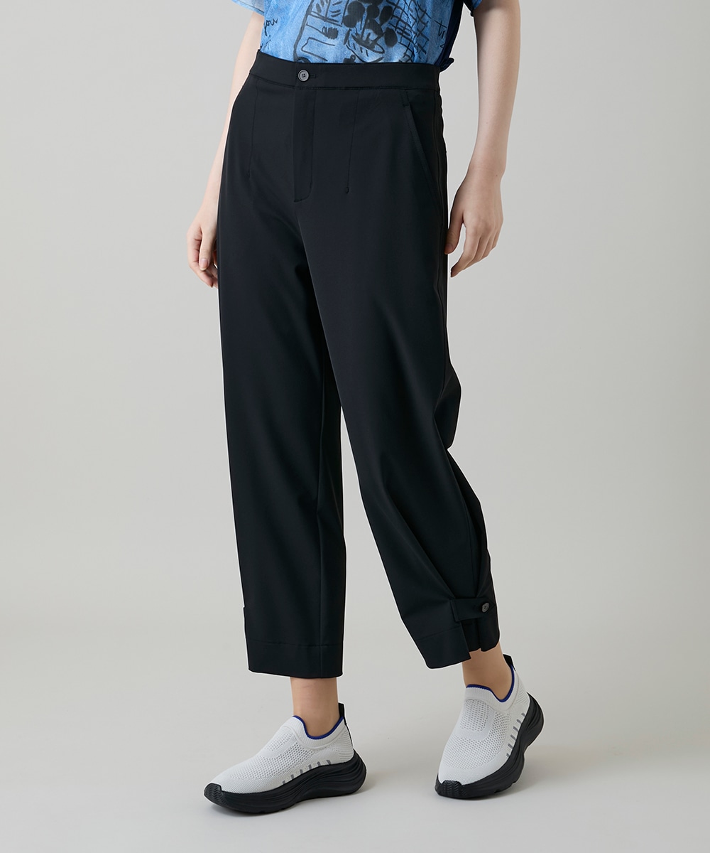 絶妙な丈感と裾のボタンディテールが、脚長効果とおしゃれ感を高め、大人カジュアルでありながらきれいめ可愛い印象も演出。