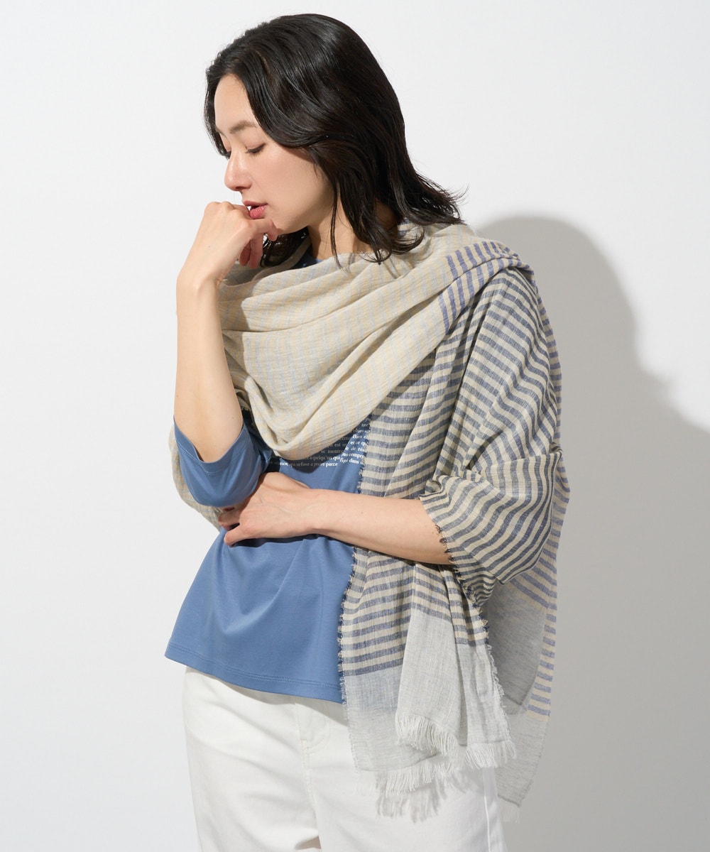 サラリとした素材のストールはカットソー同様、ボーダー柄で合わせて。