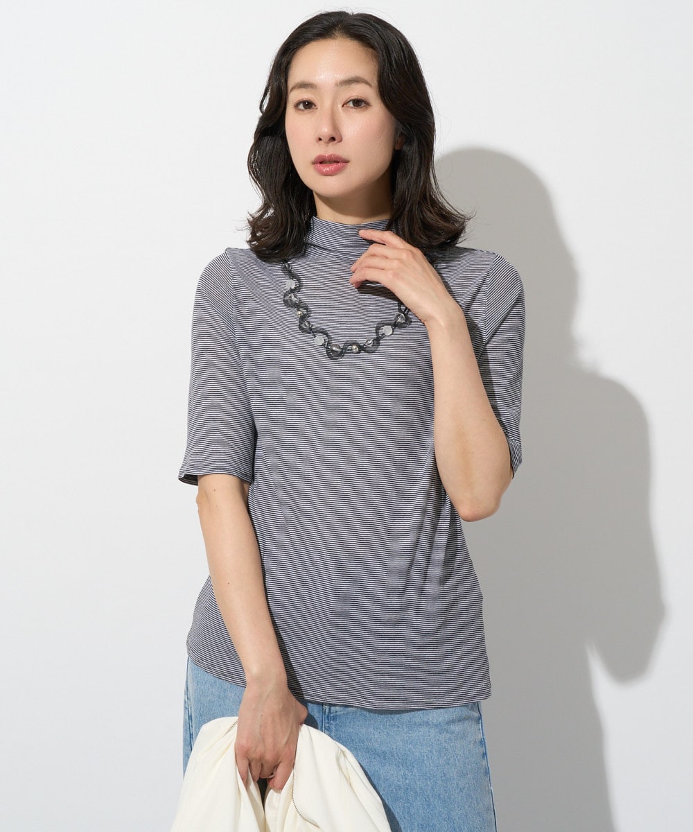 ボトルネックセミシアーカットソーは、通気性に優れた素材と低めのネックラインで、レイヤードスタイルの便利なインナーとして重宝します。