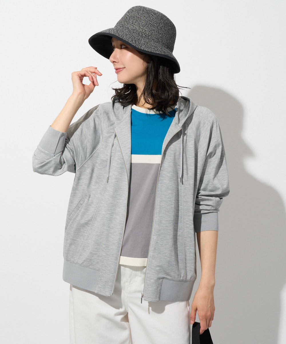 ラグランスリーブ8分袖パーカーは放射状に切り替えたデザインとリブ仕様で、ゆったりとした着心地ながらも大人のカジュアルスタイルを演出。軽い羽織り心地です。
