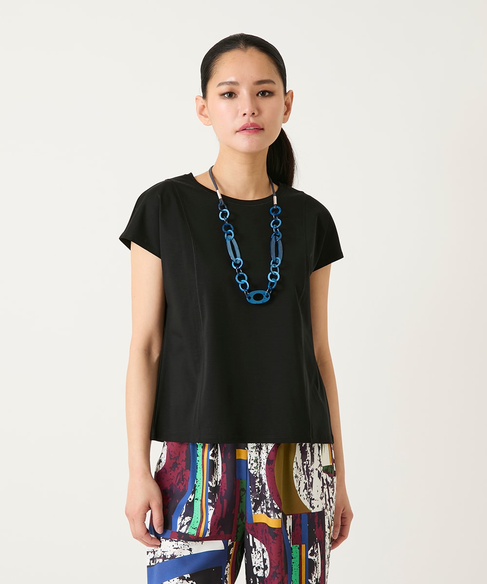 インナーのカットソーはフレンチスリーブで