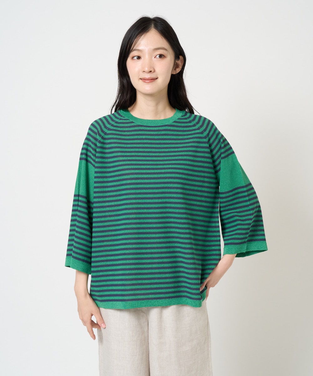 軽やかでナチュラルな印象を演出するペーパーヤーンボーダーニットは、爽やかなボーダー柄とフレアシルエットが夏のカジュアルコーデにぴったり。