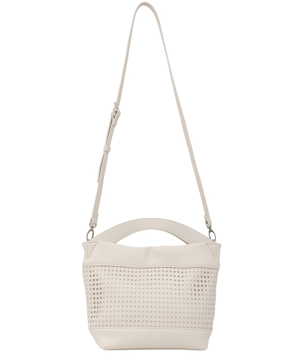 ブラウスはパンチングカットワークのデザインがポイントで、シンプルながらもおしゃれ度を格上げします。