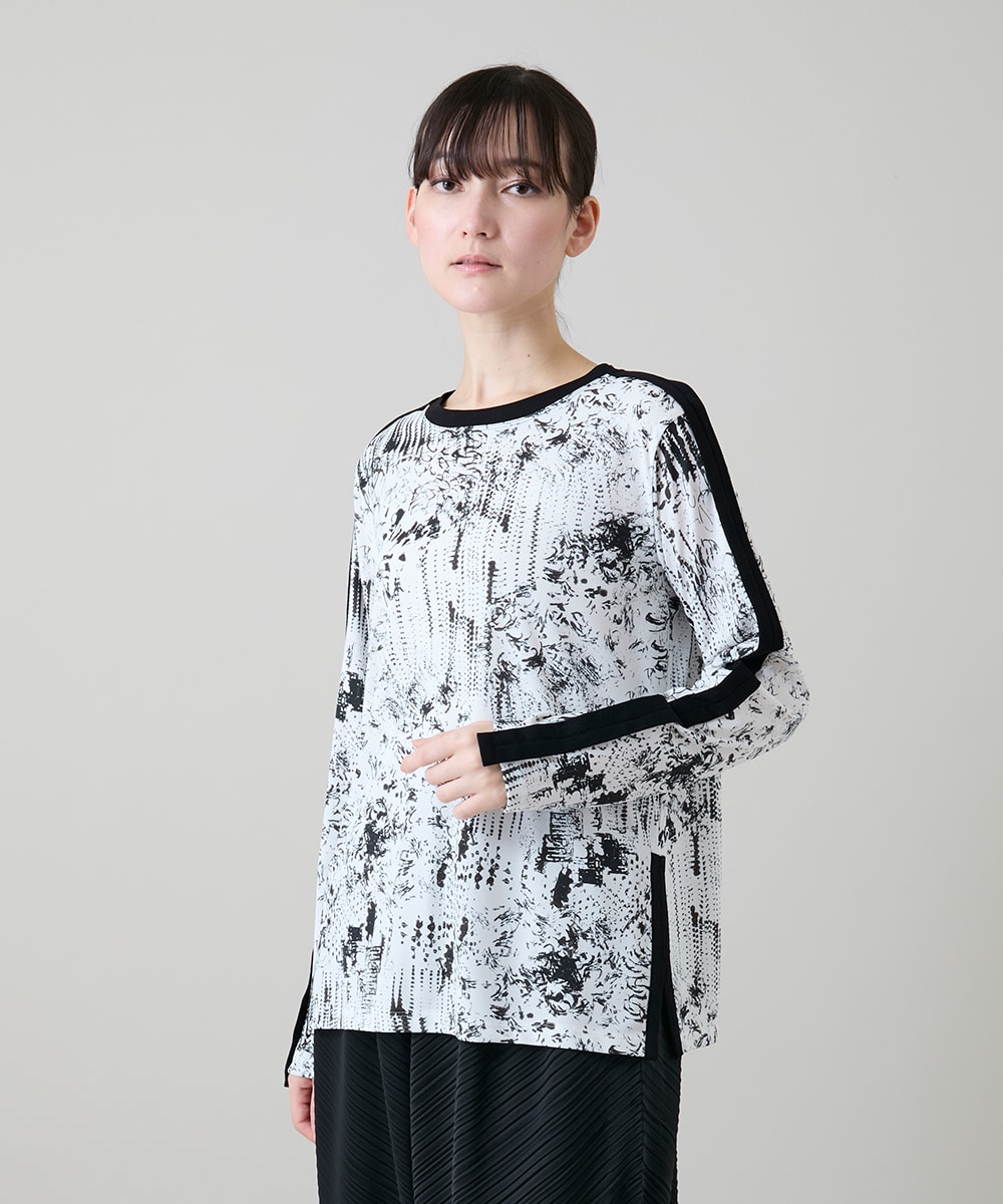 インクペインティングテープアクセントカットソー/日本製/洗える