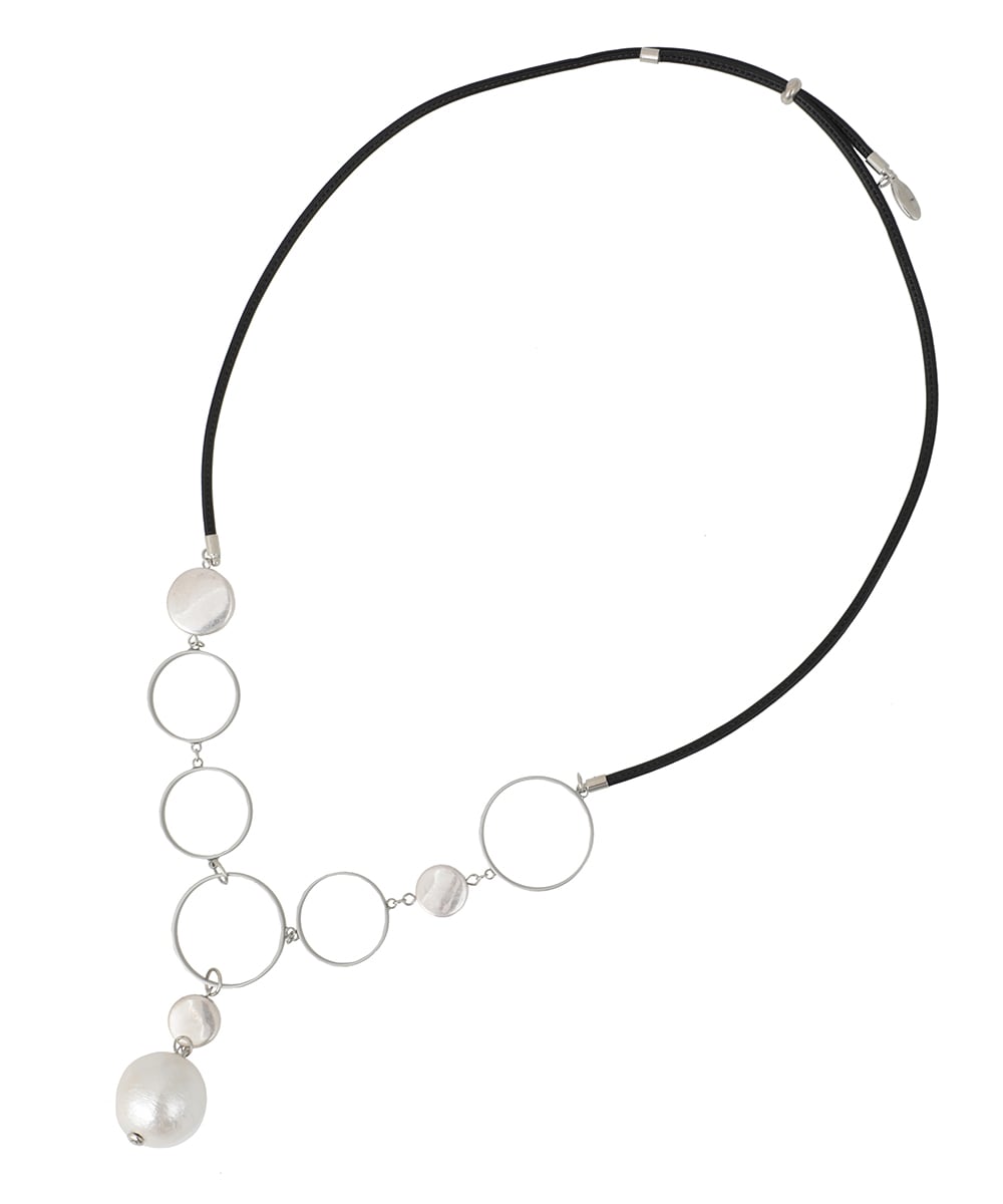 メタルリングネックレスが胸元のアクセントにオススメです。