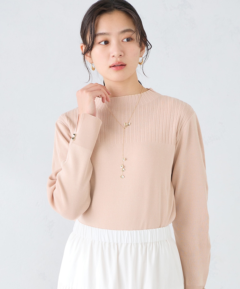 胸上の編続きリブの切替えが、ベーシックながらデザインポイントになる春ニットです!