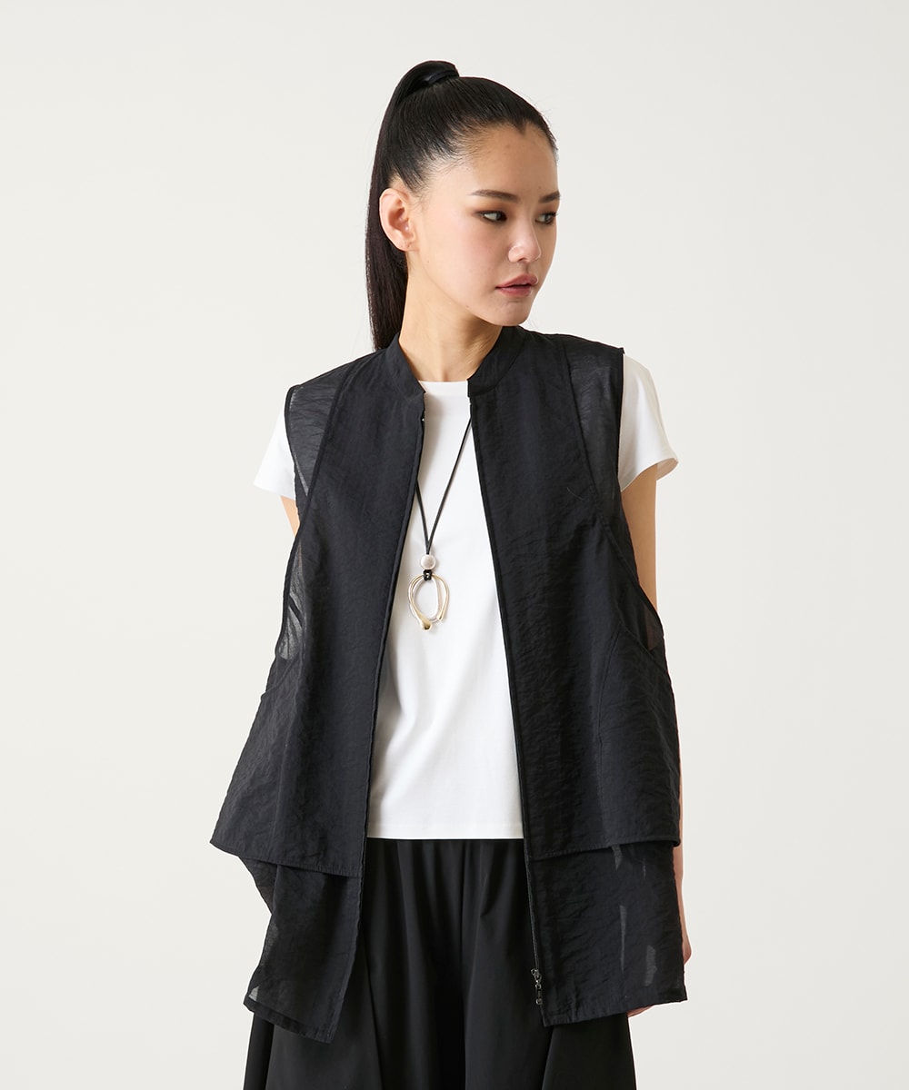 使用し、軽やかな着心地と遊び心あふれる重ねデザインが魅力。