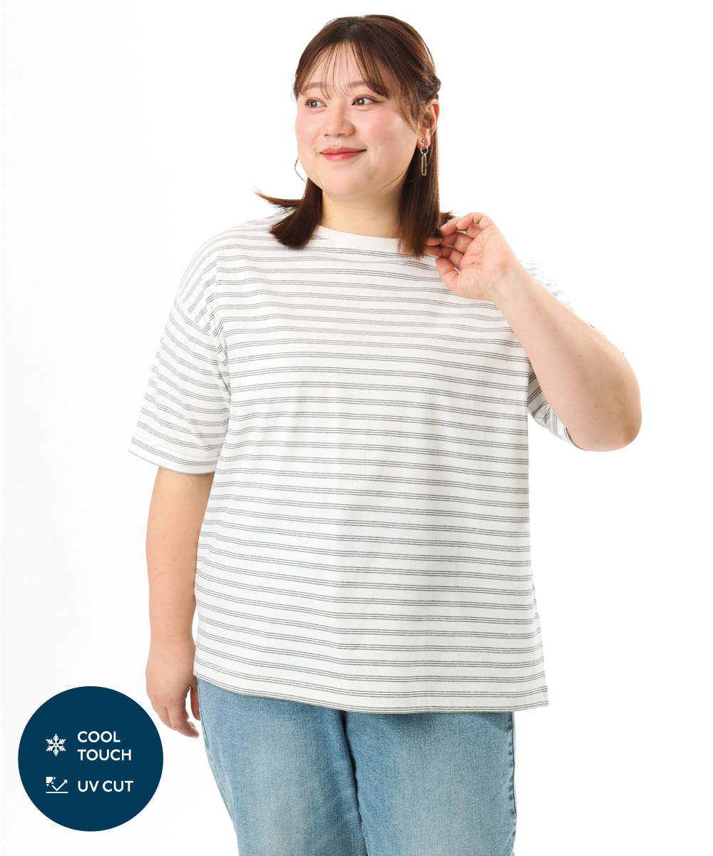 【大きいサイズ/接触冷感/UVカット】ドロップショルダーコットンTシャツ