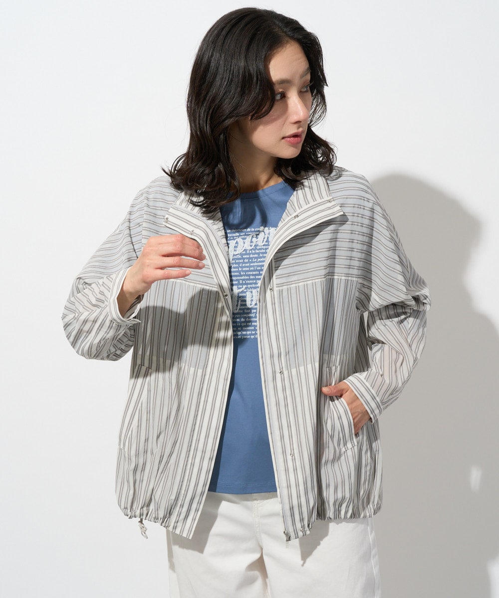 ストライプの縦ラインと透け感が、全体をすっきりと軽やかに見せてくれるのもポイント。